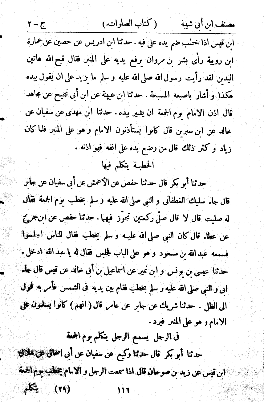 351- فِي الرَّجُل يَسْمَعُ الرَّجُلَ يَتَكَلَّمُ يَوْمَ الْجُمُعَةِ.