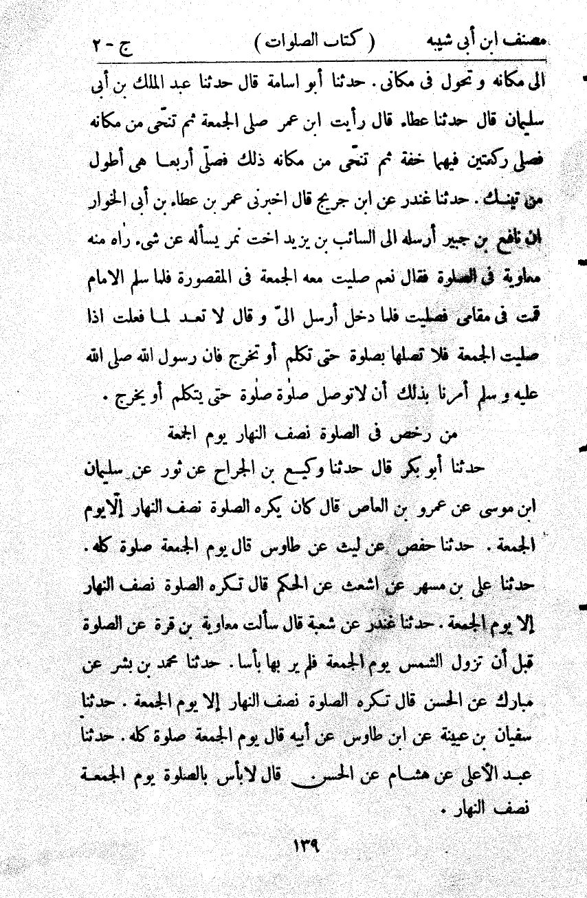 5474- حَدَّثَنَا مُحَمَّدُ بْنُ مُيَسَّر ، عَنْ مُبَارَكٍ ، عَنِ الْحَسَنِ ، قَالَ : تُكْرَهُ الصَّلاَةُ نِصْفَ النَّهَارِ ، إِلاَّ يَوْمَ جُمُعَةٍ.