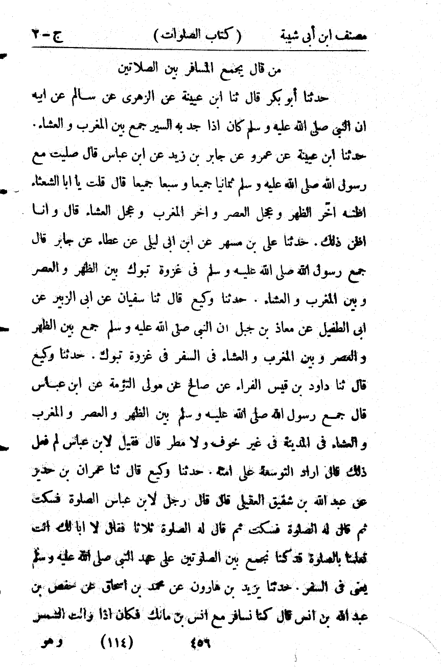 746- مَنْ قَالَ يَجْمَعُ الْمُسَافِرُ بَيْنَ الصَّلاَتَيْنِ.