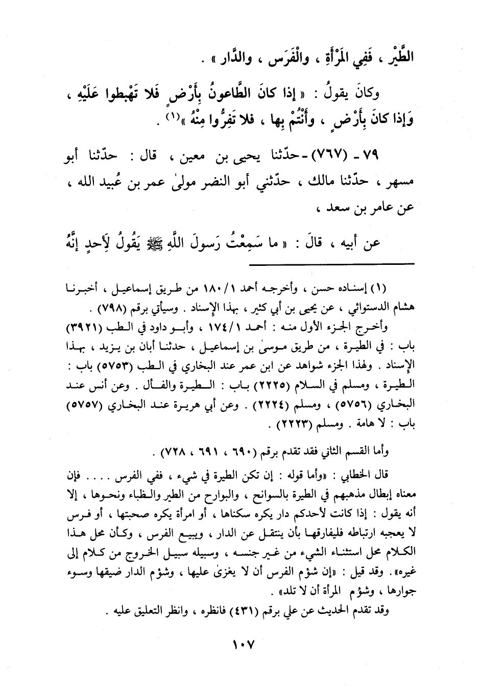 767 - حَدَّثَنَا يَحْيَى بْنُ مَعِينٍ، قَالَ: حَدَّثَنَا أَبُو مُسْهِرٍ، حَدَّثَنَا مَالِكٌ، حَدَّثَنِي أَبُو النَّضْرِ، مَوْلَى عُمَرَ بْنِ عُبَيْدِ اللَّهِ، عَنْ عَامِرِ بْنِ سَعْدٍ، عَنْ أَبِيهِ، قَالَ: «§مَا سَمِعْتُ رَسُولَ اللَّهِ صَلَّى اللهُ عَلَيْهِ وَسَلَّمَ، يَقُولُ لِأَحَدٍ إِنَّهُ مِنْ أَهْلِ الْجَنَّةِ، إِلَّا لِعَبْدِ اللَّهِ بْنِ سَلَامٍ» Kإسناده صحيح