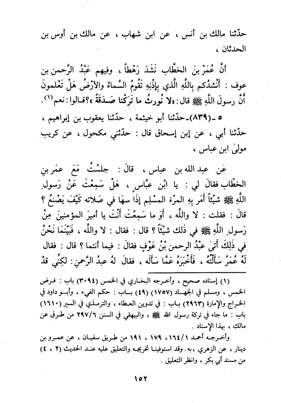 839 - حَدَّثَنَا أَبُو خَيْثَمَةَ، حَدَّثَنَا يَعْقُوبُ بْنُ إِبْرَاهِيمَ، حَدَّثَنَا أَبِي، عَنِ ابْنِ إِسْحَاقَ قَالَ: حَدَّثَنِي مَكْحُولٌ، عَنْ كُرَيْبٍ، مَوْلَى ابْنِ عَبَّاسٍ، عَنْ عَبْدِ اللَّهِ بْنِ عَبَّاسٍ قَالَ: جَلَسْتُ مَعَ عُمَرَ بْنِ الْخَطَّابِ فَقَالَ لِي: يَا ابْنَ عَبَّاسٍ، هَلْ سَمِعْتَ عَنْ رَسُولِ اللَّهِ صَلَّى اللهُ عَلَيْهِ وَسَلَّمَ شَيْئًا أَمَرَ بِهِ الْمُسْلِمَ إِذَا سَهَا فِي صَلَاتِهِ، كَيْفَ يَصْنَعُ؟ قَالَ: فَقُلْتُ: لَا وَاللَّهِ، أَوَمَا سَمِعْتَ أَنْتَ يَا أَمِيرَ الْمُؤْمِنِينَ مِنْ رَسُولِ اللَّهِ صَلَّى اللهُ عَلَيْهِ وَسَلَّمَ فِي ذَلِكَ شَيْئًا؟ قَالَ: فَقَالَ: لَا وَاللَّهِ، فَبَيْنَمَا نَحْنُ فِي ذَلِكَ أَتَى عَبْدُ الرَّحْمَنِ بْنُ عَوْفٍ فَقَالَ: فِيمَ أَنْتُمَا؟ قَالَ: فَقَالَ لَهُ عُمَرُ: سَأَلْتُهُ، فَأَخْبَرَهُ عَمَّا سَأَلَهُ، فَقَالَ لَهُ عَبْدُ الرَّحْمَنِ: لَكِنِّي قَدْ سَمِعْتُ رَسُولَ اللَّهِ صَلَّى اللهُ عَلَيْهِ وَسَلَّمَ يَأْمُرُ فِي ذَلِكَ، فَقَالَ لَهُ عُمَرُ: فَأَنْتَ عِنْدَنَا عَدْلٌ، فَمَاذَا سَمِعْتَ مِنْ رَسُولِ اللَّهِ صَلَّى اللهُ عَلَيْهِ وَسَلَّمَ؟ قَالَ: فَقَالَ عَبْدُ الرَّحْمَنِ: سَمِعْتُ رَسُولَ اللَّهِ صَلَّى اللهُ عَلَيْهِ وَسَلَّمَ يَقُولُ: «§إِذَا سَهَا أَحَدُكُمْ فِي صَلَاتِهِ حَتَّى لَا يَدْرِي أَزَادَ أَمْ نَقَصَ، فَإِنْ كَانَ شَكَّ فِي الْوَاحِدَةِ وَالثِّنْتَيْنِ فَلْيَجْعَلْهَا وَاحِدَةً، وَإِذَا شَكَّ فِي الثِّنْتَيْنِ أَوِ الثَّلَاثَةِ فَلْيَجْعَلْهَا ثِنْتَيْنِ، وَإِذَا شَكَّ فِي الثَّلَاثَةِ وَالْأَرْبَعِ فَلْيَجْعَلْهَا ثَلَاثًا حَتَّى يَكُونَ الْوَهْمُ فِي الزِّيَادَةِ، ثُمَّ يَسْجُدُ سَجْدَتَيْنِ وَهُوَ جَالِسٌ قَبْلَ أَنْ يُسَلِّمَ، ثُمَّ يُسَلِّمُ» Kإسناده صحيح