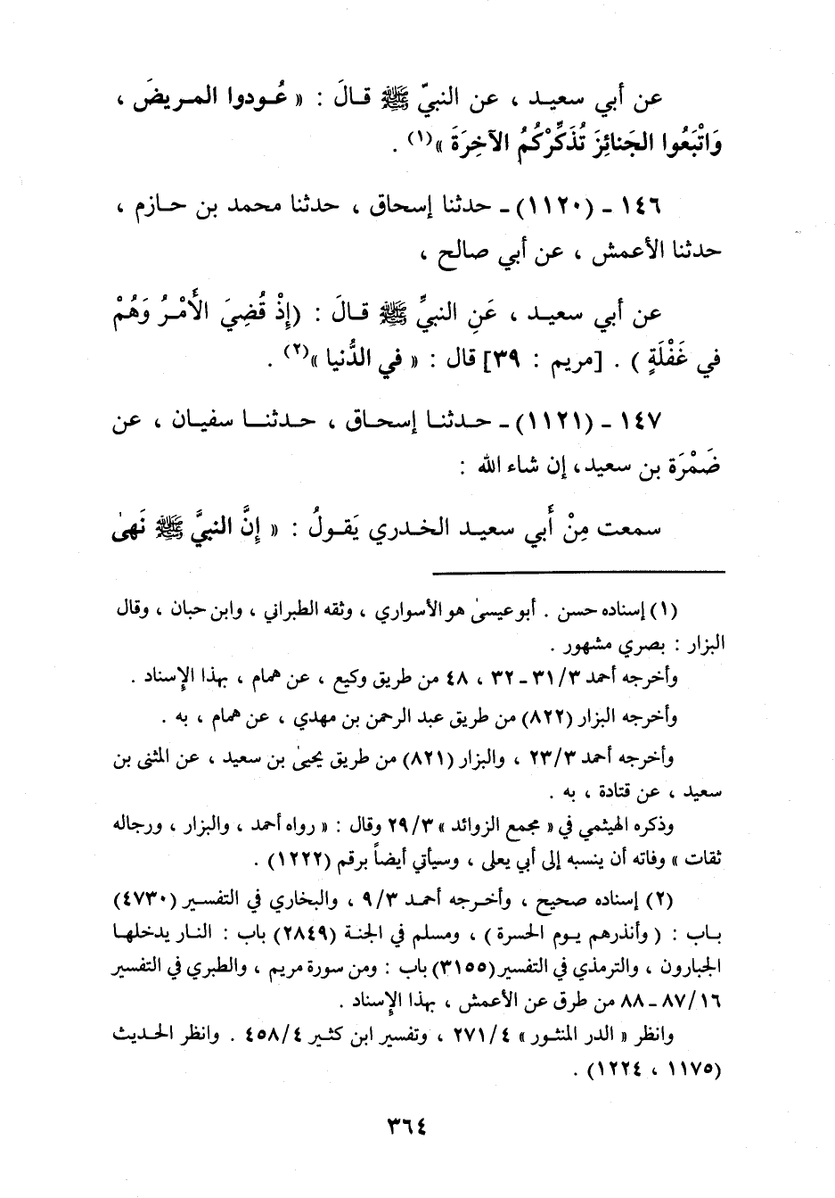 1120 - حَدَّثَنَا إِسْحَاقُ، حَدَّثَنَا مُحَمَّدُ بْنُ خَازِمٍ، حَدَّثَنَا الْأَعْمَشُ، عَنْ أَبِي صَالِحٍ، عَنْ أَبِي سَعِيدٍ، عَنِ النَّبِيِّ صَلَّى اللهُ عَلَيْهِ وَسَلَّمَ قَالَ: {§إِذْ قُضِيَ الْأَمْرُ وَهُمْ فِي غَفْلَةٍ} [مريم: 39] قَالَ: «فِي الدُّنْيَا» Kإسناده صحيح