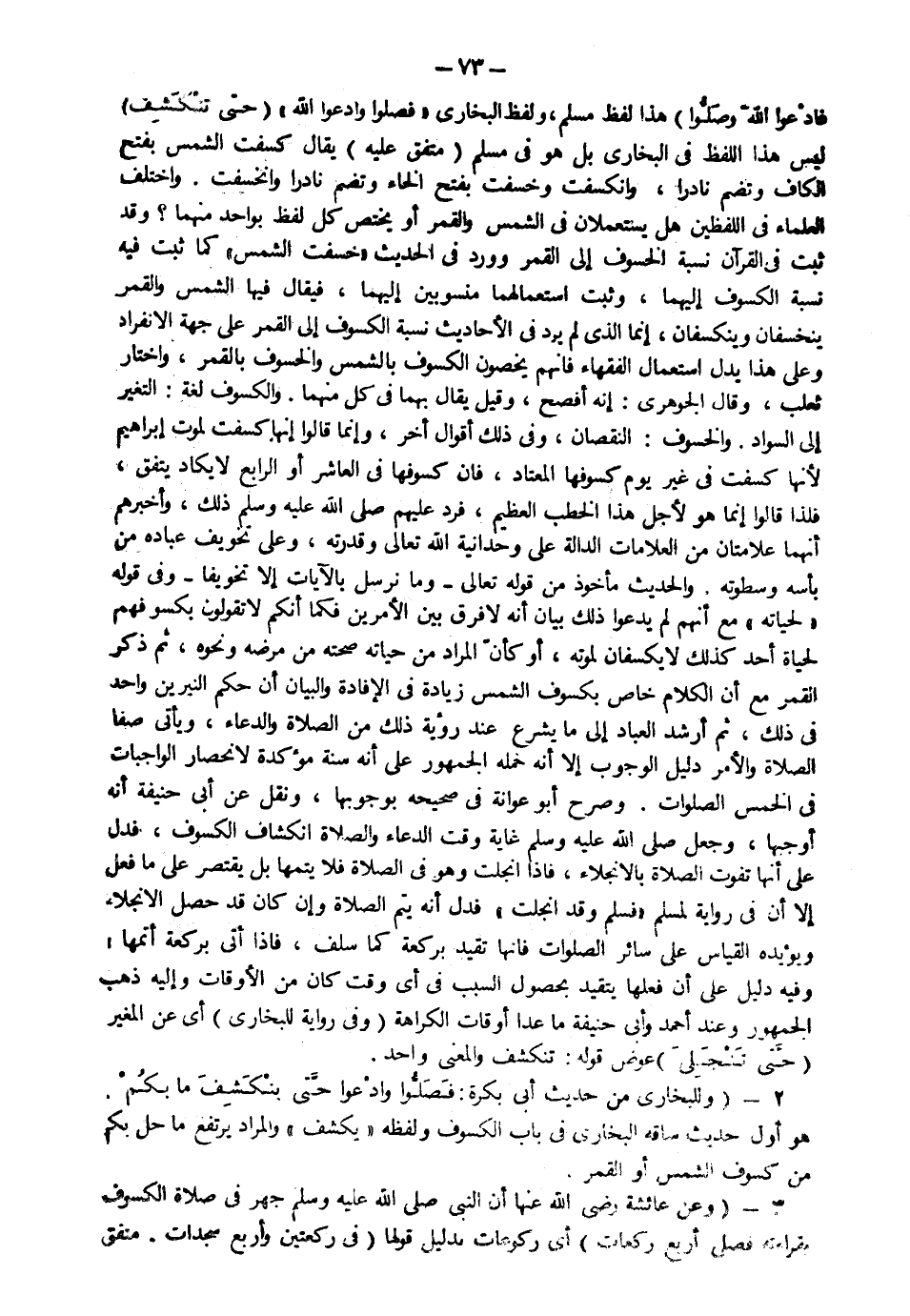 "حتى تَنكشف" ليس هذا اللفظ في البخاري، بل هو في مسلم متفق عليه. يقال: كسفت الشمس: بفتح الكاف وتضم نادراً وانكسفت وخسفت بفتح الخاء وتضم نادراً وانخسفت.