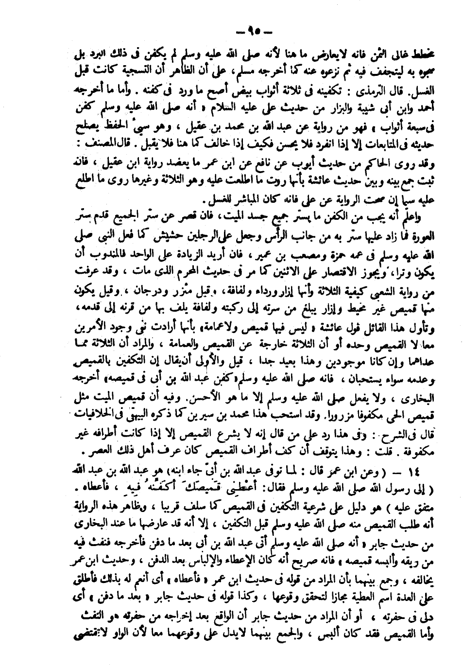 14- ( وعن ابن عمر قال: لما توفي عبد الله بن أُبيّ جاء ابنه ) هو عبد الله بن عبد الله ( إلى رسول الله صَلّى الله عَلَيْهِ وَسَلّم فقال: اعطني قميصك أكفنه فيه، فأعطاه . متفق عليه(.