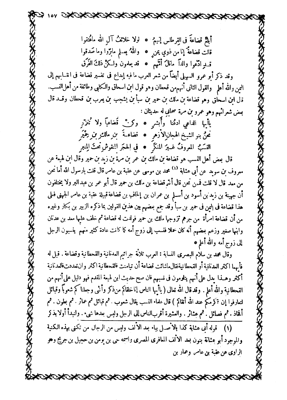 وَقَدْ ذَكَرَ أَبُو عَمْرٍو السُّهَيْلِيُّ أَيْضًا مِنْ شِعْرِ الْعَرَبِ مَا فِيهِ ابْدَاعٌ فِي تَفْسِيرِ قُضَاعَةَ فِي انْتِسَابِهِمْ إِلَى الْيَمَنِ وَاللَّهُ أَعْلَمُ وَالْقَوْلُ الثَّانِي أَنَّهُمْ مِنْ قَحْطَانَ وَهُوَ قَوْلُ ابْنِ إِسْحَاقَ وَالْكَلْبِيِّ وَطَائِفَةٍ مِنْ أَهْلِ النَّسَبِ.