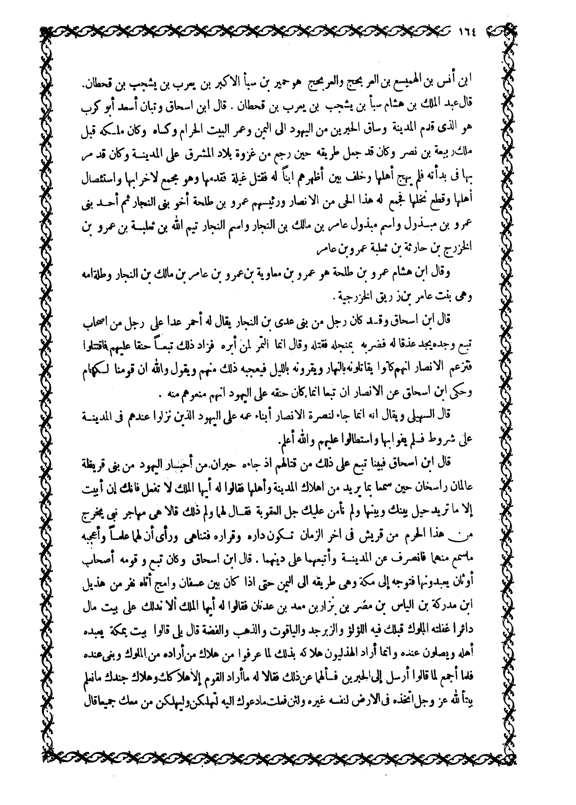 قَالَ عَبْدُ الْمَلِكِ بْنُ هِشَامٍ سَبَأِ بْنِ يَشْجُبَ بْنِ يَعْرُبَ بْنِ قَحْطَانَ. قَالَ ابْنُ إِسْحَاقَ وَتُبَّانُ أَسْعَدَ أَبُو كَرِبٍ هُوَ الَّذِي قَدِمَ الْمَدِينَةَ وَسَاقَ الْحَبْرَيْنِ مِنَ الْيَهُودِ إِلَى الْيَمَنِ وَعَمَّرَ الْبَيْتَ الْحَرَامَ وَكَسَاهُ وَكَانَ مُلْكُهُ قَبْلَ مُلْكِ رَبِيعَةَ بْنِ نَصْرٍ وَكَانَ قَدْ جَعَلَ طَرِيقُهُ حِينَ رَجَعَ مِنْ غَزْوَةِ بِلَادِ الْمَشْرِقِ عَلَى الْمَدِينَةِ وَكَانَ قَدْ مَرَّ بِهَا فِي بُدَأَتِهِ فَلَمْ يُهِجْ أَهْلَهَا وَخَلَّفَ بَيْنَ أَظْهُرِهِمُ ابْنًا لَهُ فَقُتِلَ غِيلَةً فَقَدِمَهَا وَهُوَ مُجْمِعٌ لِإِخْرَابِهَا وَاسْتِئْصَالِ أَهْلِهَا وَقَطْعِ نَخْلِهَا فَجَمَعَ لَهُ هَذَا الْحَيُّ من الأنصار ورئيسهم عمرو بن طلحة أَخُو بَنِي النَّجَّارِ ثُمَّ أَحَدُ بَنِي عَمْرِو بْنِ مَبْذُولٍ وَاسْمُ مَبْذُولٍ عَامِرُ بْنُ مَالِكِ بْنِ النَّجَّارِ وَاسْمُ النَّجَّارِ تَيْمُ اللَّهِ بْنُ ثَعْلَبَةَ بْنِ عَمْرِو بْنِ الْخَزْرَجِ بْنِ حَارِثَةَ بن ثعلبة عَمْرِو بْنِ عَامِرٍ وَقَالَ ابْنُ هِشَامٍ عَمْرُو بْنُ طَلْحَةَ هُوَ عَمْرُو بْنُ مُعَاوِيَةَ بْنِ عَمْرِو بْنِ عَامِرِ بْنِ مَالِكِ بْنِ النَّجَّارِ وَطَلَّةُ أُمُّهُ وَهِيَ بِنْتُ عَامِرِ بْنِ زُرَيْقٍ الْخَزْرَجِيَّةُ.