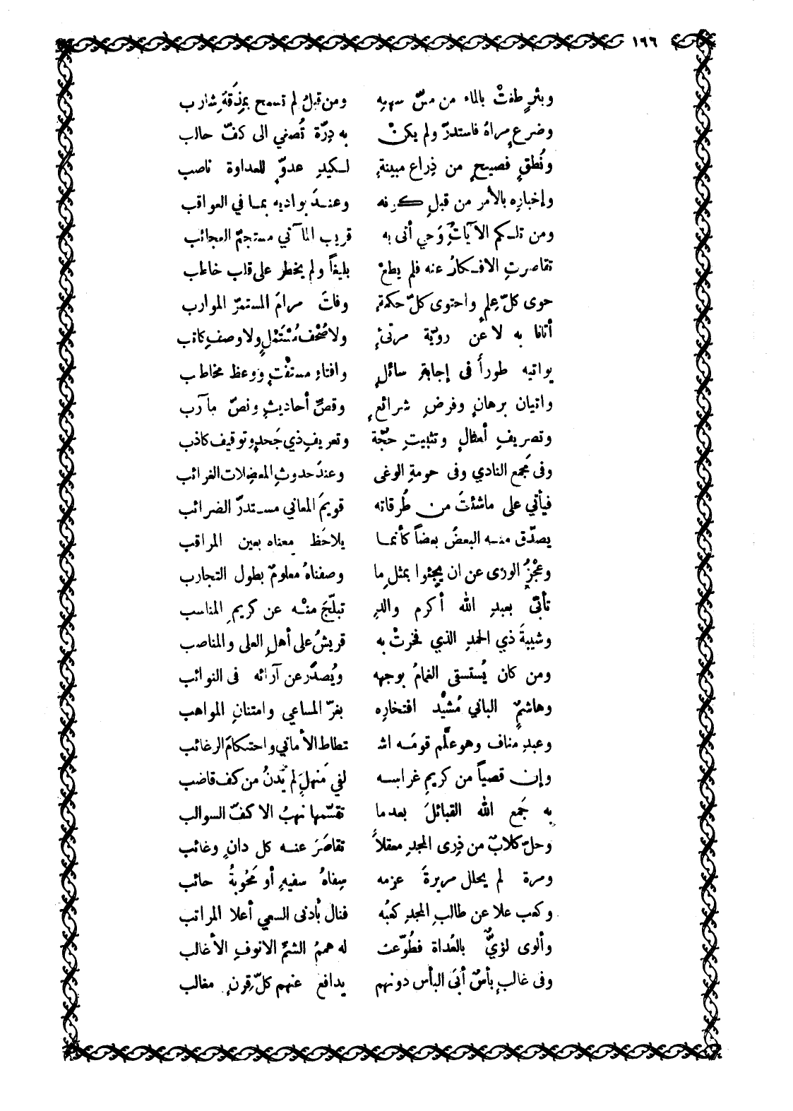 وَعَبْدِ مَنَافٍ وَهُوَ عَلَّمَ قَوْمَهُ ... اشْتِطَاطَ الْأَمَانِي وَاحْتِكَامَ الرَّغَائِبِ