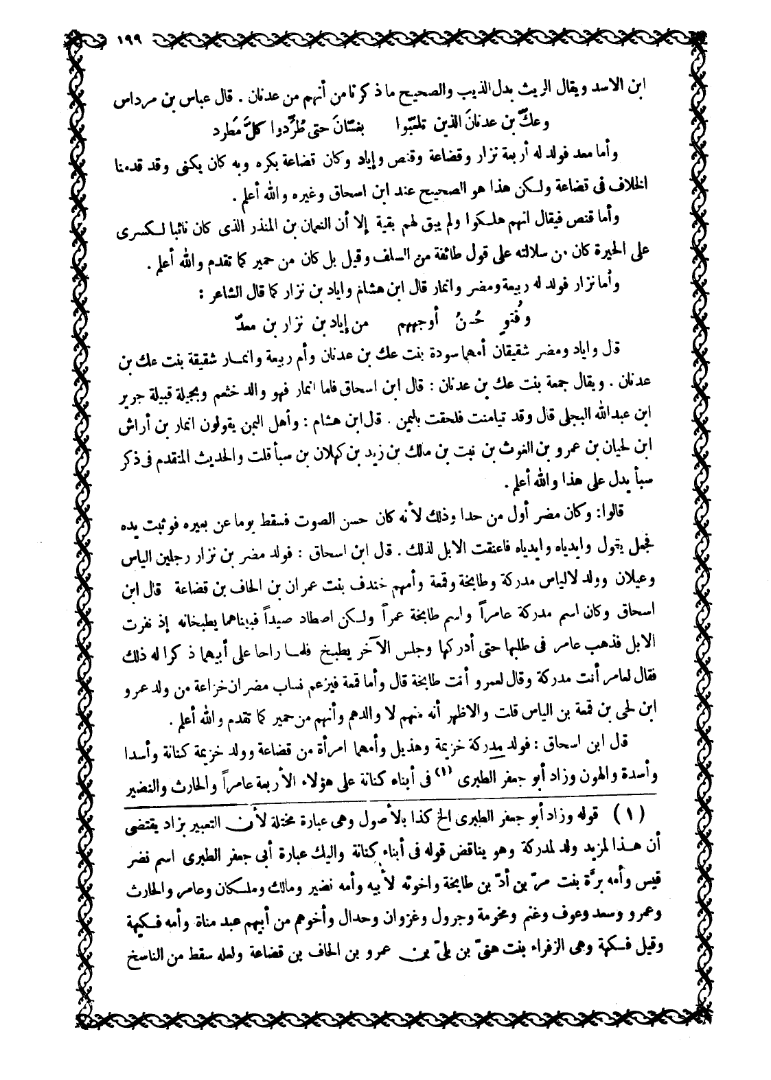 وَأَمَّا نِزَارٌ فَوُلِدَ لَهُ رَبِيعَةُ وَمُضَرُ وَأَنْمَارٌ قَالَ ابْنُ هِشَامٍ وَإِيَادُ بْنُ نِزَارٍ كَمَا قَالَ الشَّاعِرُ: