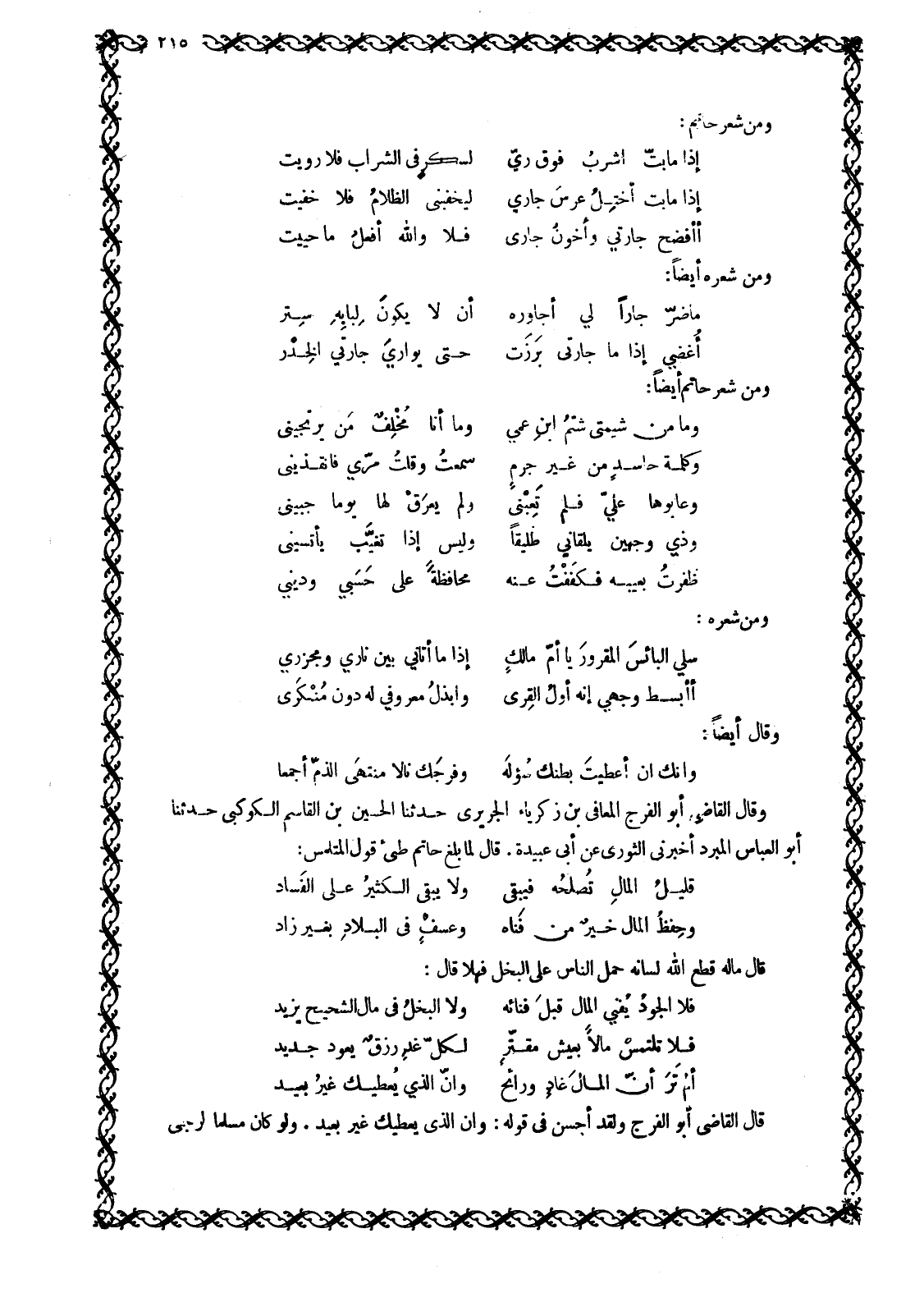 وَمِنْ شِعْرِ حَاتِمٍ أَيْضًا: