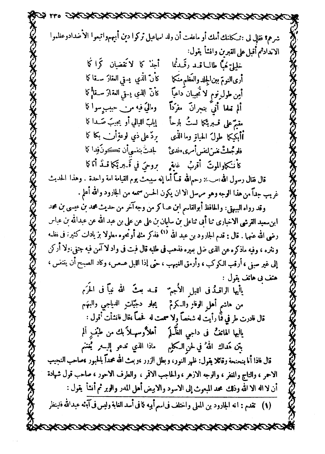 شرهم؟ فقال لي: ثكلتك أمك أو ما عَلِمْتَ أَنَّ وَلَدَ إِسْمَاعِيلَ تَرَكُوا دِينَ أَبِيهِمْ وَاتَّبَعُوا الْأَضْدَادَ وَعَظَّمُوا الْأَنْدَادَ ثُمَّ أَقْبَلَ عَلَى الْقَبْرَيْنِ وَأَنْشَأَ يَقُولُ: