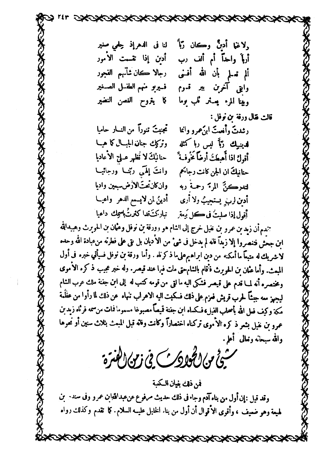 ذكر شيء مما وقع مِنَ الَحَوَادِثِ فِي زَمَنِ الْفَتْرَةِ