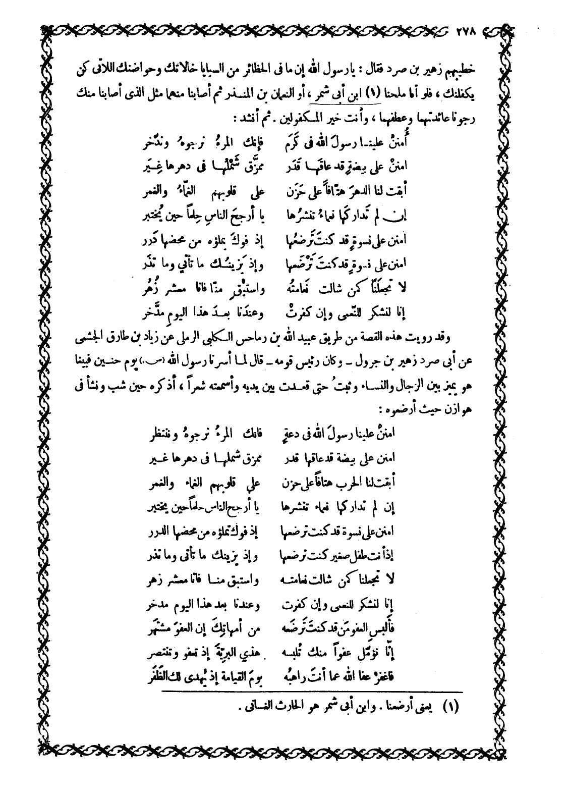[1] يعنى أرضعنا. وابن أبى شمر هو الحارث الغساني.