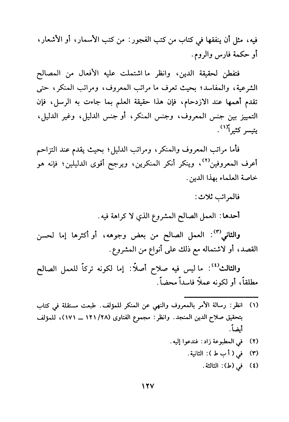 (¬1) انظر: رسالة الأمر بالمعروف والنهي عن المنكر للمؤلف. طبعت مستقلة في كتاب بتحقيق صلاح الدين المنجد. وانظر: مجموع الفتاوى (28 / 121 ـ 171) ، للمؤلف أيضًا.
