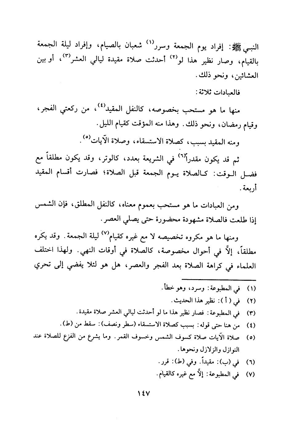 (¬3) في المطبوعة: فصار نظير هذا ما لو أحدثت ليالي العشر صلاة مقيدة.