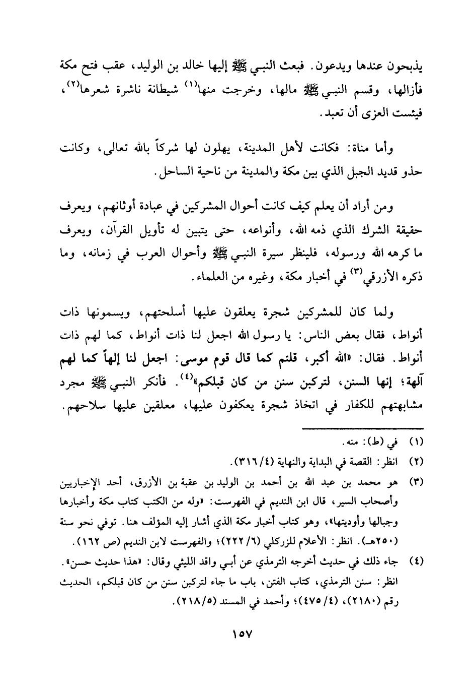 ومن أراد أن يعلم كيف كانت أحوال المشركين في عبادة أوثانهم، ويعرف حقيقة الشرك الذي ذمه الله، وأنواعه، حتى يتبين له تأويل القرآن، ويعرف ما كرهه الله ورسوله، فلينظر سيرة النبي صلى الله عليه وسلم وأحوال العرب في زمانه، وما ذكره الأزرقي (¬3) في أخبار مكة، وغيره من العلماء.