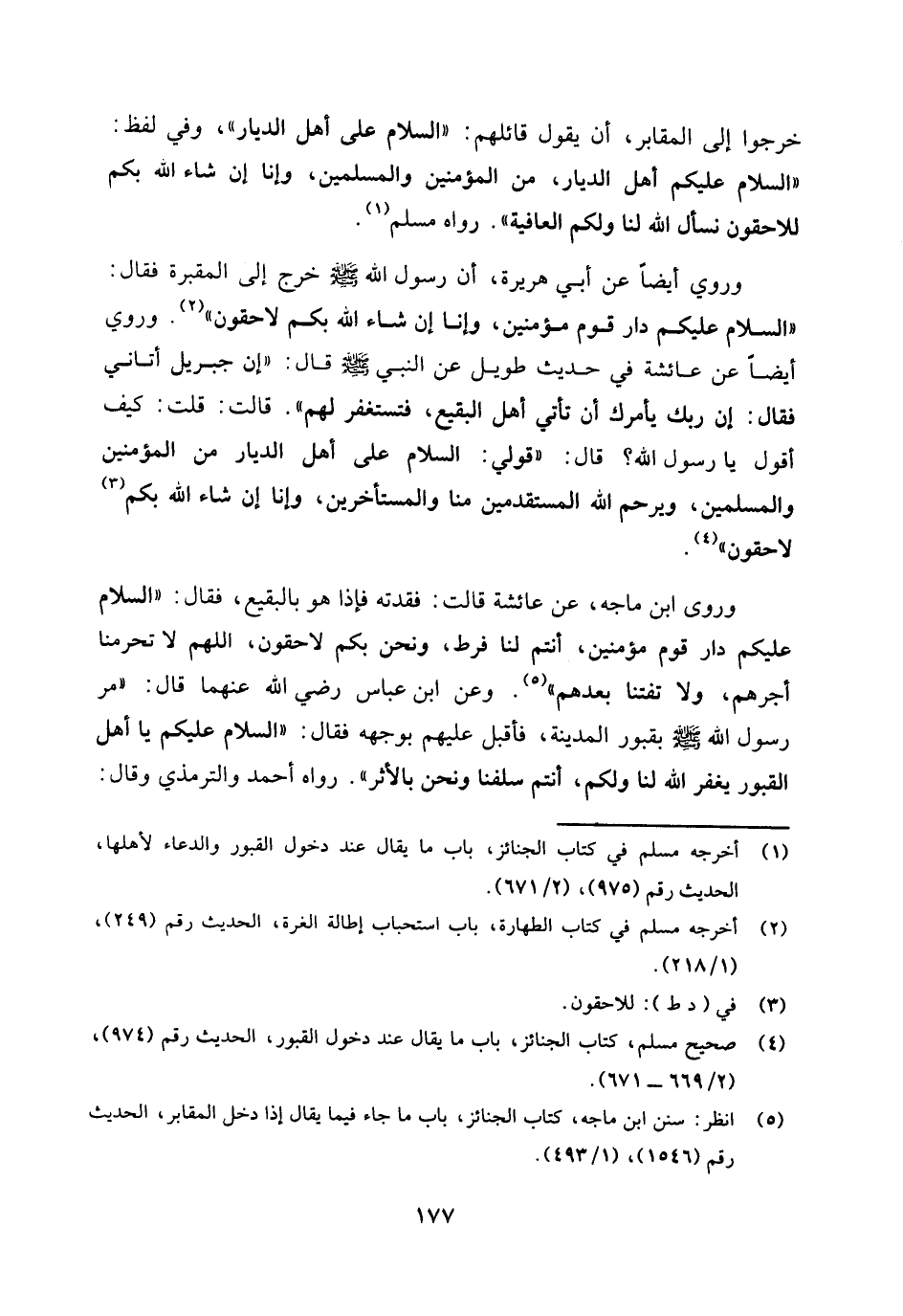 (¬5) انظر: سنن ابن ماجه، كتاب الجنائز، باب ما جاء فيما يقال إذا دخل المقابر، حديث رقم (1546) ، (1 / 493) .