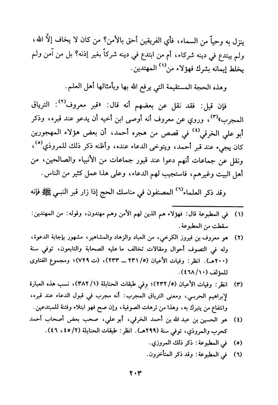 (¬3) انظر: وفيات الأعيان (5 / 232) ؛ وفي طبقات الحنابلة (1 / 382) ، نسب هذه العبارة لإبراهيم الحربي، ومعنى الترياق المجرب: أنه مجرب في قبول الدعاء عند قبره، وانتفاع من يتبرك به، وهذا من ترهات الصوفية، وإن صح فهو ابتلاء وفتنة للمبتدعين.