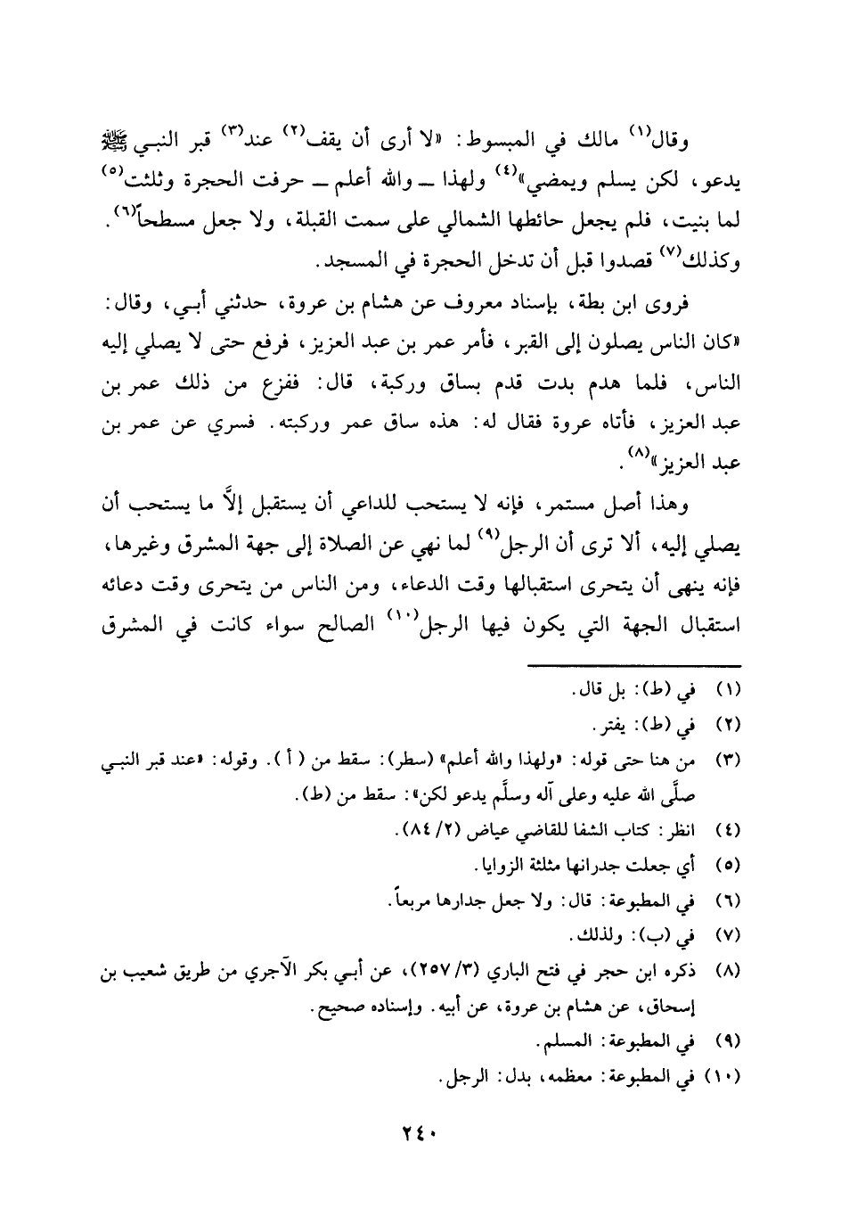 (¬4) انظر: كتاب (الشفا) للقاضي عياض (2 / 84) .
