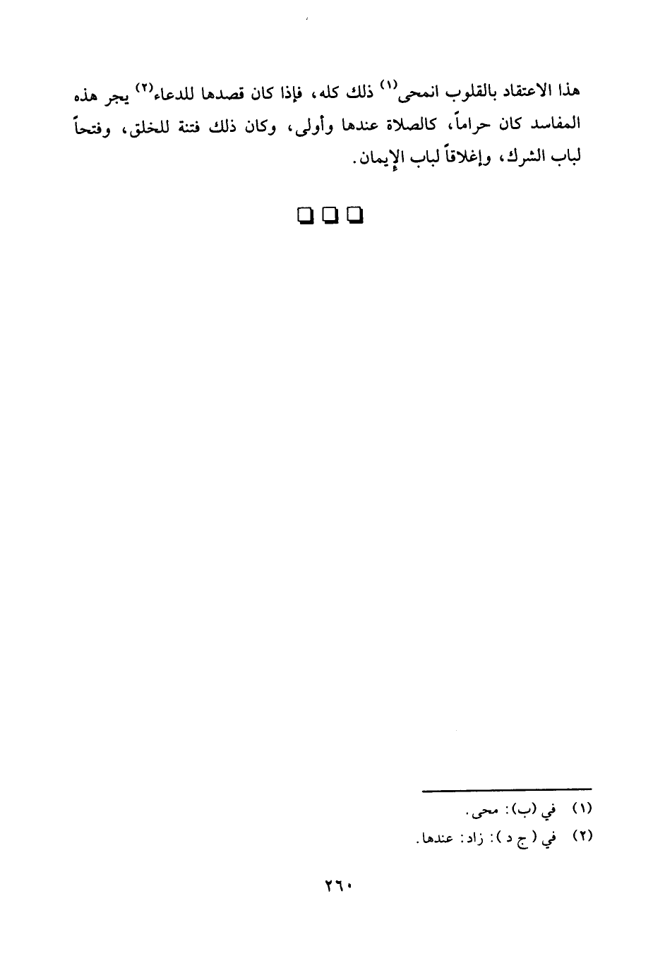 هذا الاعتقاد بالقلوب انمحى (¬1) ذلك كله، فإذا كان قصدها للدعاء (¬2) يجر هذه المفاسد كان حراما، كالصلاة عندها وأولى، وكان ذلك فتنة للخلق، وفتحا لباب الشرك، وإغلاقا لباب الإيمان.