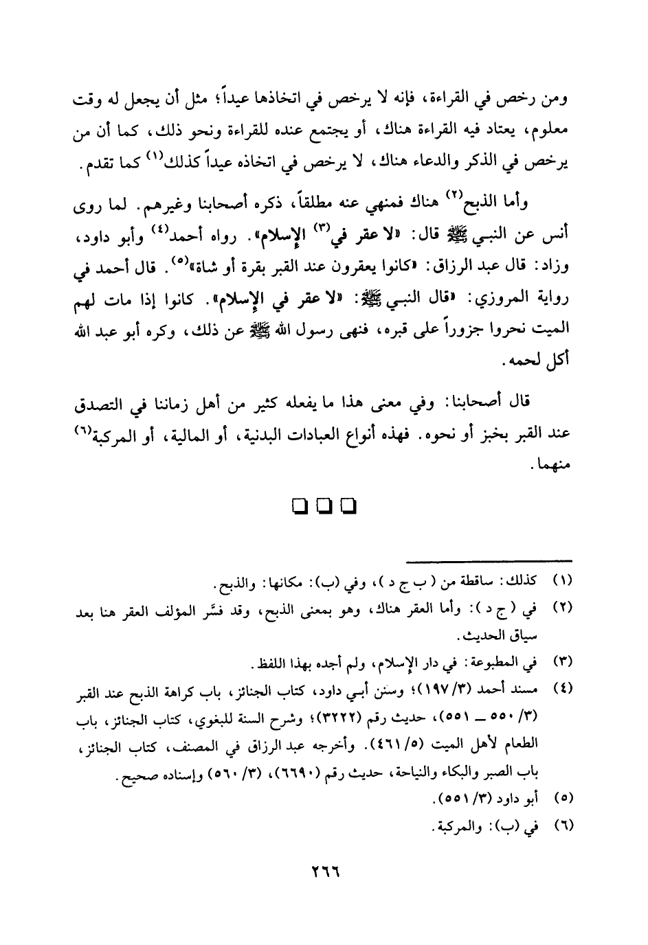(¬4) مسند أحمد (3 / 197) ، وسنن أبي داود، كتاب الجنائز، باب كراهة الذبح عند القبر (3 / 550 - 551) ، حديث رقم (3222) ؛ وشرح السنة للبغوي، كتاب الجنائز، باب الطعام لأهل الميت (5 / 461) . وأخرجه عبد الرزاق في المصنف، كتاب الجنائز، باب الصبر والبكاء والنياحة، حديث رقم (6690) ، (3 / 560) وإسناده صحيح.