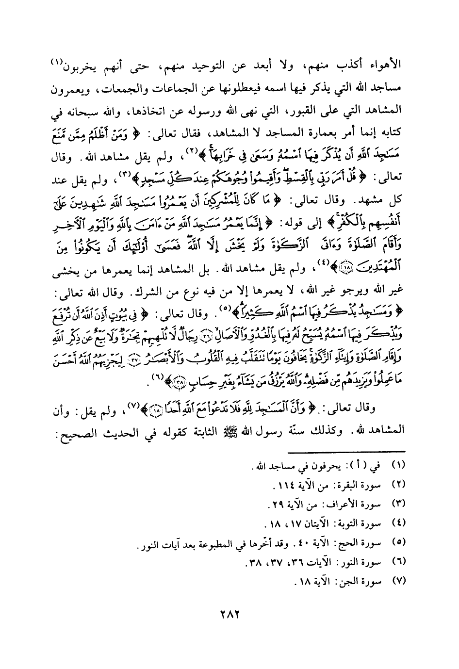 وقال تعالى: {مَا كَانَ لِلْمُشْرِكِينَ أَنْ يَعْمُرُوا مَسَاجِدَ اللَّهِ شَاهِدِينَ عَلَى أَنْفُسِهِمْ بِالْكُفْرِ} [التوبة: 17] إلى قوله: {إِنَّمَا يَعْمُرُ مَسَاجِدَ اللَّهِ مَنْ آمَنَ بِاللَّهِ وَالْيَوْمِ الْآخِرِ وَأَقَامَ الصَّلَاةَ وَآتَى الزَّكَاةَ وَلَمْ يَخْشَ إِلَّا اللَّهَ فَعَسَى أُولَئِكَ أَنْ يَكُونُوا مِنَ الْمُهْتَدِينَ} [التوبة: 18] (¬4) ولم يقل: مشاهد الله. بل المشاهد إنما يعمرها من يخشى غير الله ويرجو غير الله لا يعمرها إلا من فيه نوع من الشرك.