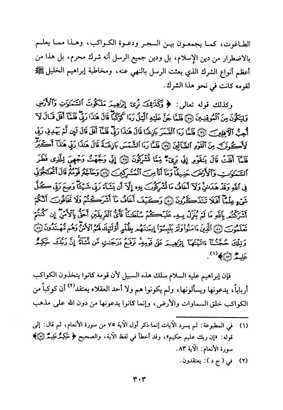 (¬1) سورة الأنعام: الآيات 75- 83. وفي المطبوعة: لم يسرد الآيات إنما ذكر أول الآية 75 من سورة الأنعام، ثم قال: إلى قوله: " إن ربك عليم حكيم"، وقد أخطأ في لفظ الآية، والصحيح "حكيم عليم" سورة الأنعام: الآية 83.