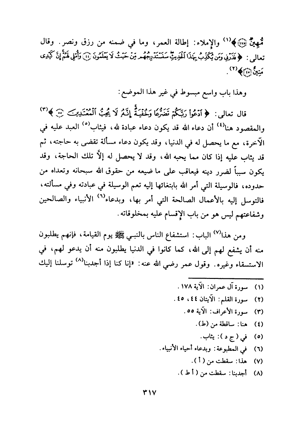 (¬5) في المطبوعة: وبدعاء أحياء الأنبياء.