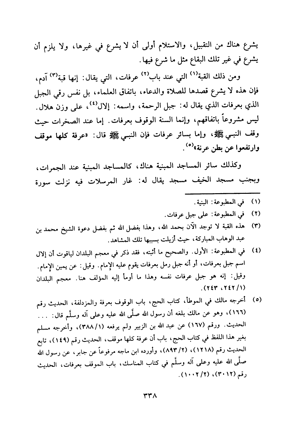 (¬4) في المطبوعة: الأول. والصحيح ما أثبته، فقد ذكر في معجم البلدان أن (إلال) : اسم جبل بعرفات، أو أنه جبل رمل بعرفات يقوم عليه الإمام، وقيل: عن يمين الإمام. وقيل: إنه هو جبل عرفات نفسه. وهذا ما أومأ إليه المؤلف هنا. معجم البلدان (1 / 242، 243) .