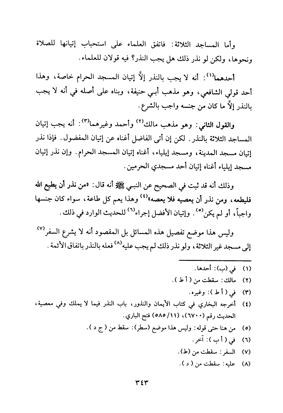 وليس هذا موضع تفصيل هذه المسائل، بل المقصود: أنه لا يشرع السفر (¬7) إلى مسجد غير الثلاثة، ولو نذر ذلك؛ لم يجب عليه (¬8) فعله بالنذر باتفاق الأئمة.