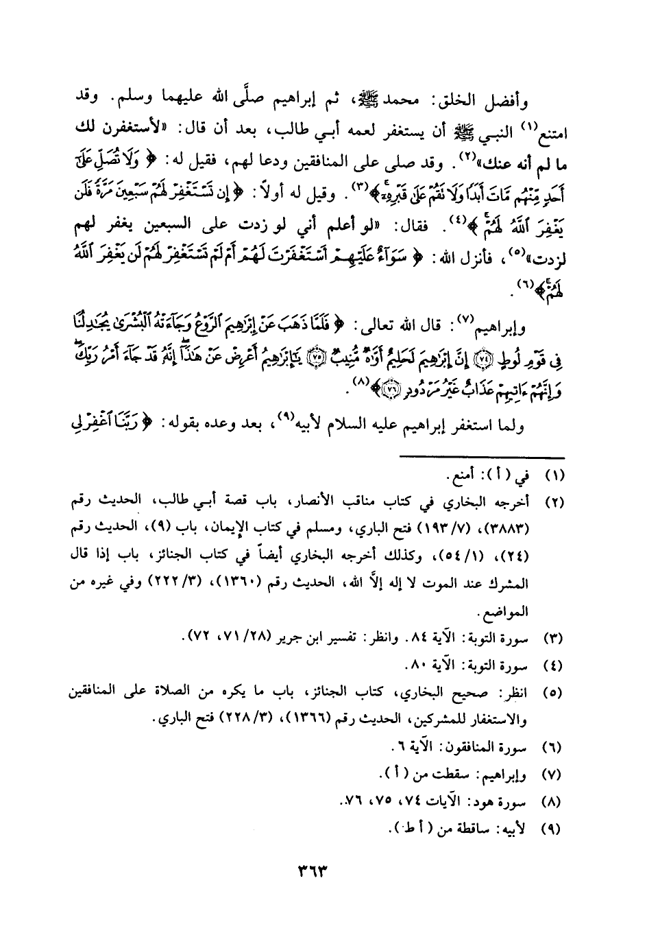 (¬6) انظر: صحيح البخاري، كتاب الجنائز، باب ما يكره من الصلاة على المنافقين والاستغفار للمشركين، الحديث رقم (1366) ، (3 / 228) فتح الباري.