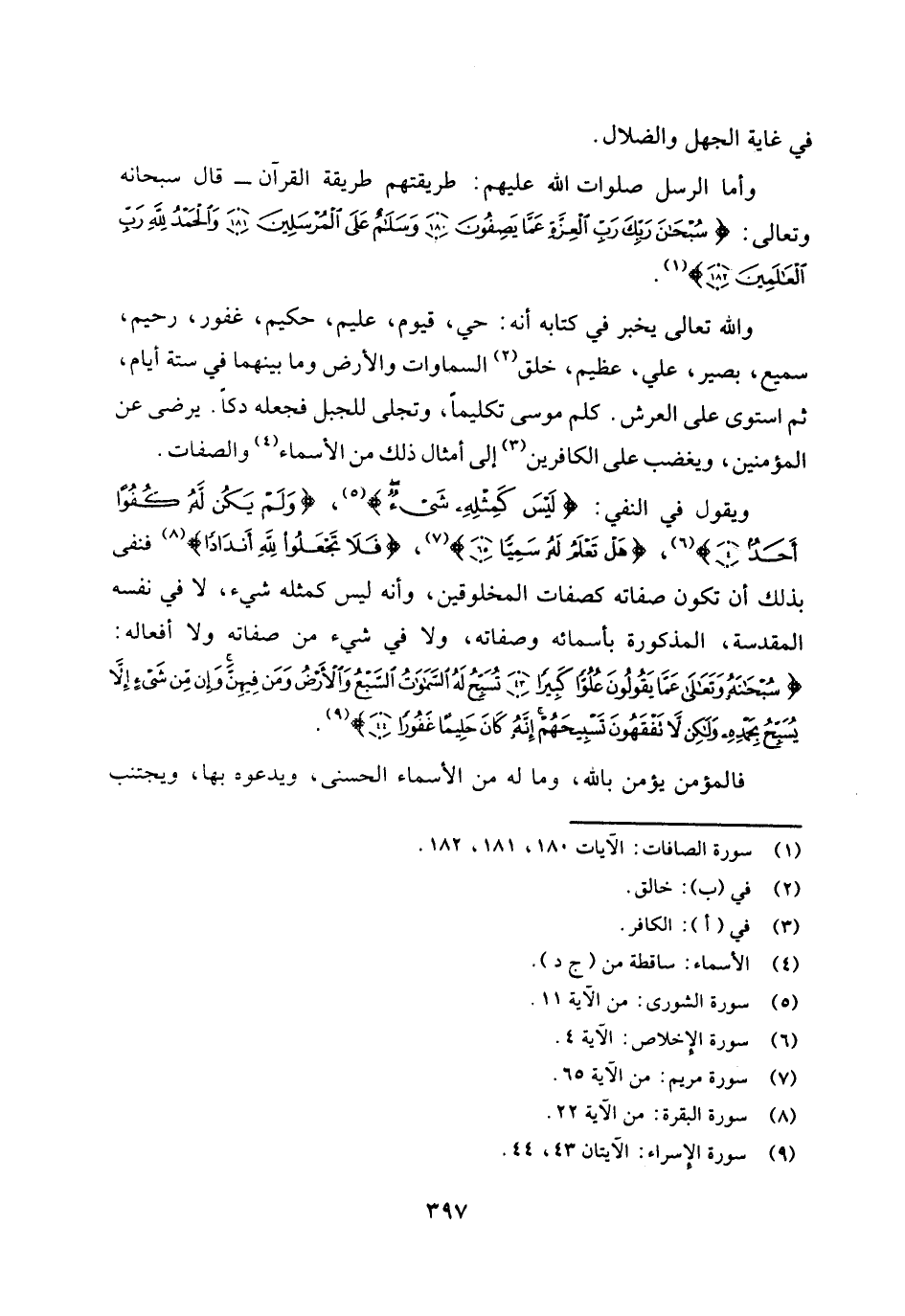 وأما الرسل صلوات الله عليهم: فطريقتهم طريقة القرآن، قال سبحانه وتعالى: {سُبْحَانَ رَبِّكَ رَبِّ الْعِزَّةِ عَمَّا يَصِفُونَ - وَسَلَامٌ عَلَى الْمُرْسَلِينَ - وَالْحَمْدُ لِلَّهِ رَبِّ الْعَالَمِينَ} [الصافات: 180 - 182] (¬1) .