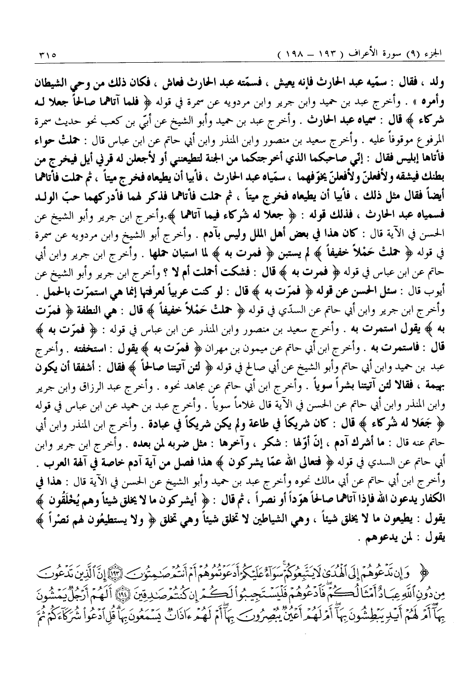 وَإِنْ تَدْعُوهُمْ إِلَى الْهُدى لا يَتَّبِعُوكُمْ سَواءٌ عَلَيْكُمْ أَدَعَوْتُمُوهُمْ أَمْ أَنْتُمْ صامِتُونَ (193) إِنَّ الَّذِينَ تَدْعُونَ مِنْ دُونِ اللَّهِ عِبادٌ أَمْثالُكُمْ فَادْعُوهُمْ فَلْيَسْتَجِيبُوا لَكُمْ إِنْ كُنْتُمْ صادِقِينَ (194) أَلَهُمْ أَرْجُلٌ يَمْشُونَ بِها أَمْ لَهُمْ أَيْدٍ يَبْطِشُونَ بِها أَمْ لَهُمْ أَعْيُنٌ يُبْصِرُونَ بِها أَمْ لَهُمْ آذانٌ يَسْمَعُونَ بِها قُلِ ادْعُوا شُرَكاءَكُمْ ثُمَّ كِيدُونِ فَلا تُنْظِرُونِ (195) إِنَّ وَلِيِّيَ اللَّهُ الَّذِي نَزَّلَ الْكِتابَ وَهُوَ يَتَوَلَّى الصَّالِحِينَ (196) وَالَّذِينَ تَدْعُونَ مِنْ دُونِهِ لَا يَسْتَطِيعُونَ نَصْرَكُمْ وَلا أَنْفُسَهُمْ يَنْصُرُونَ (197)