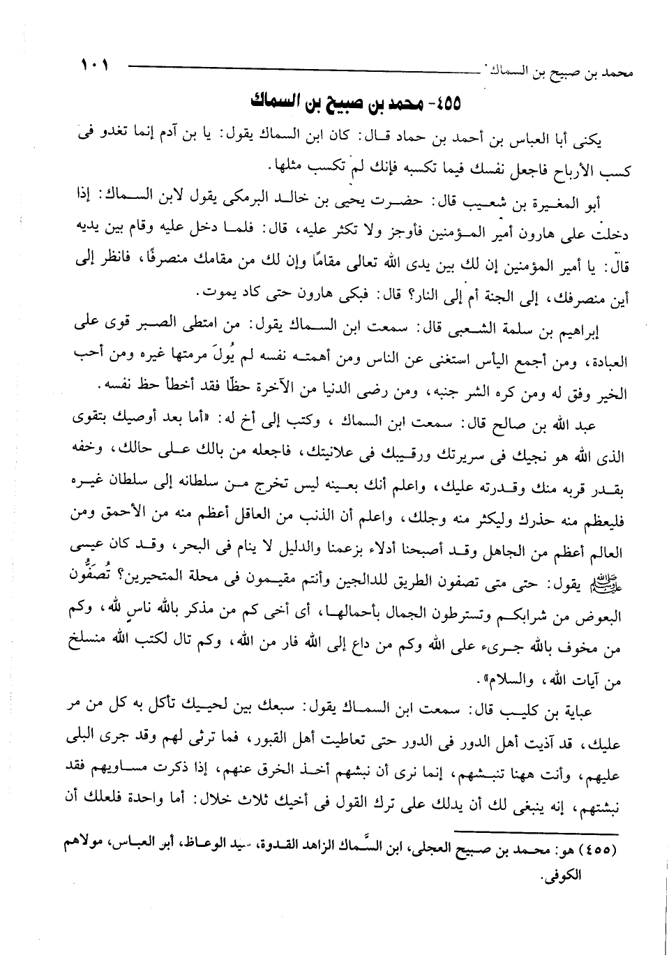 455 - هو: محمد بن صبيح العجلي، ابن السماك الزاهد القدوة، سيد الوعاظ، أبو العباس، مولاهم الكوفي.