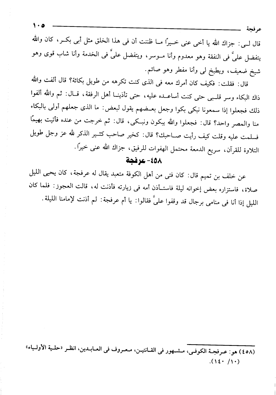 458 - هو: عرفجة الكوفي، مشهور في القانتين، معروف في العابدين، انظر حلية الأولياء 10/140.