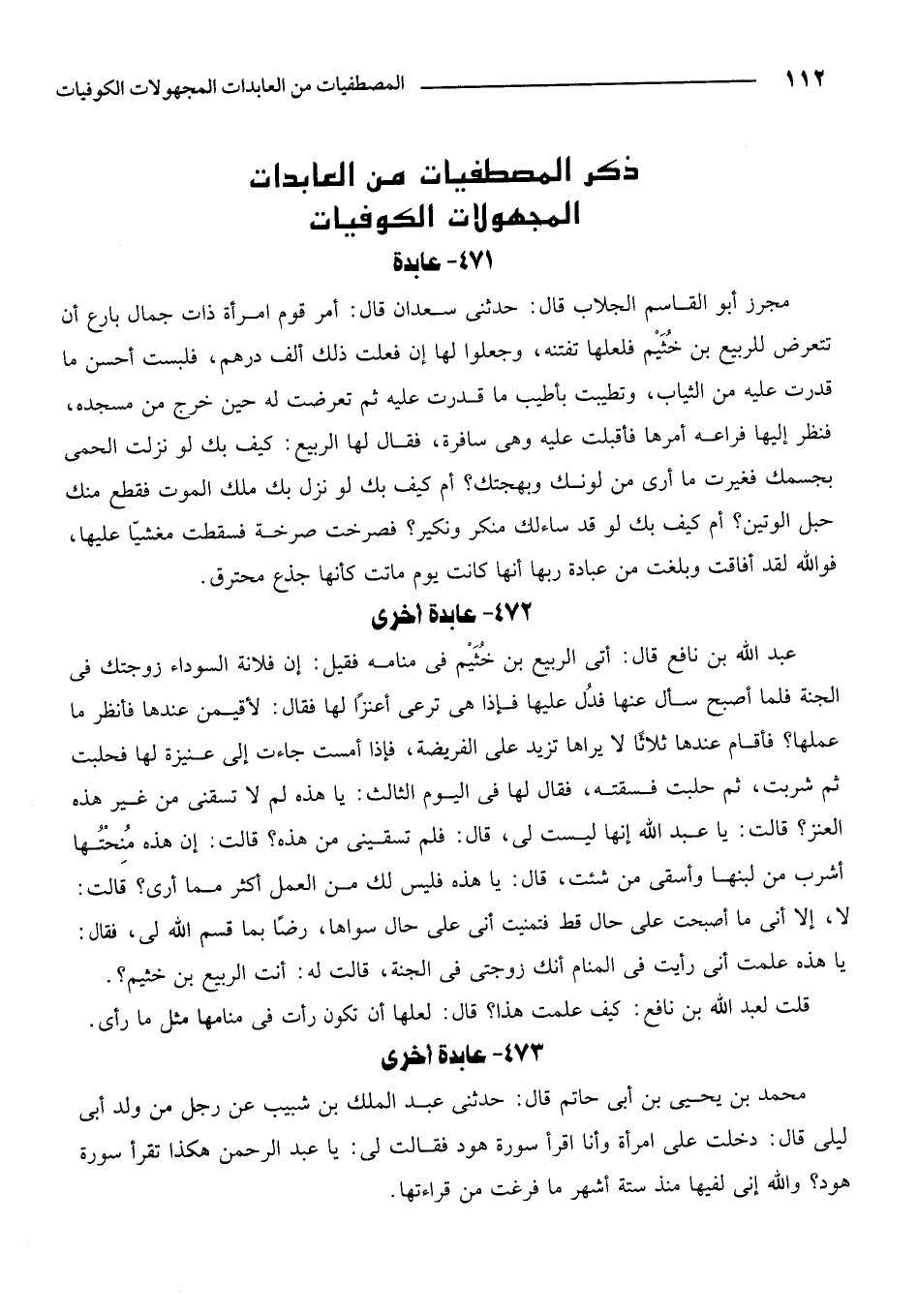 ذكر المصطفيات من العابدات الكوفيات مجهولات الأسماء