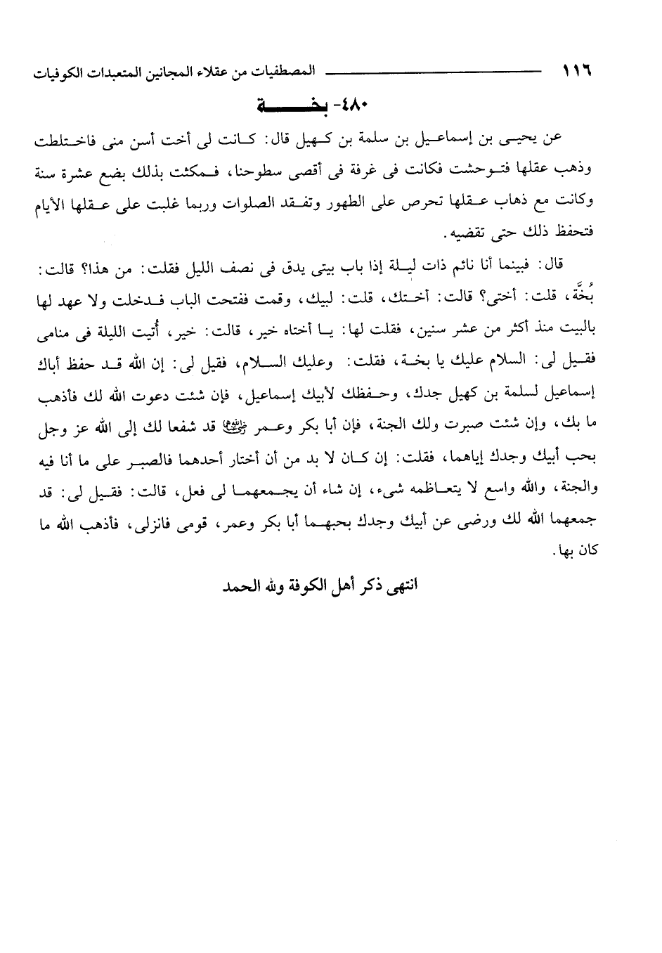 انتهى ذكر أهل الكوفة ولله الحمد.