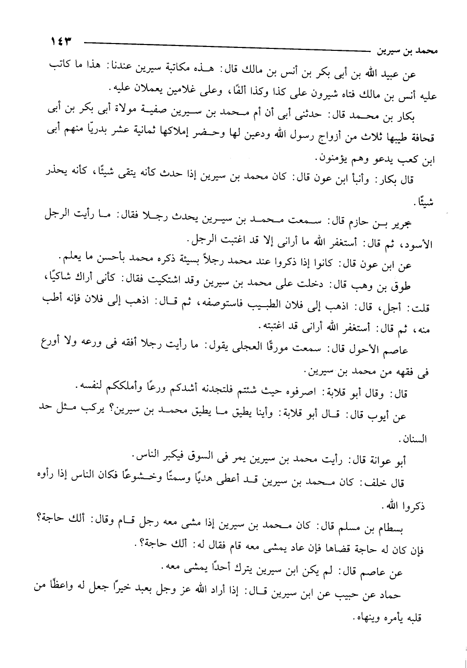 عن عاصم قال: لم يكن ابن سيرين يترك أحداً يمشي معه.