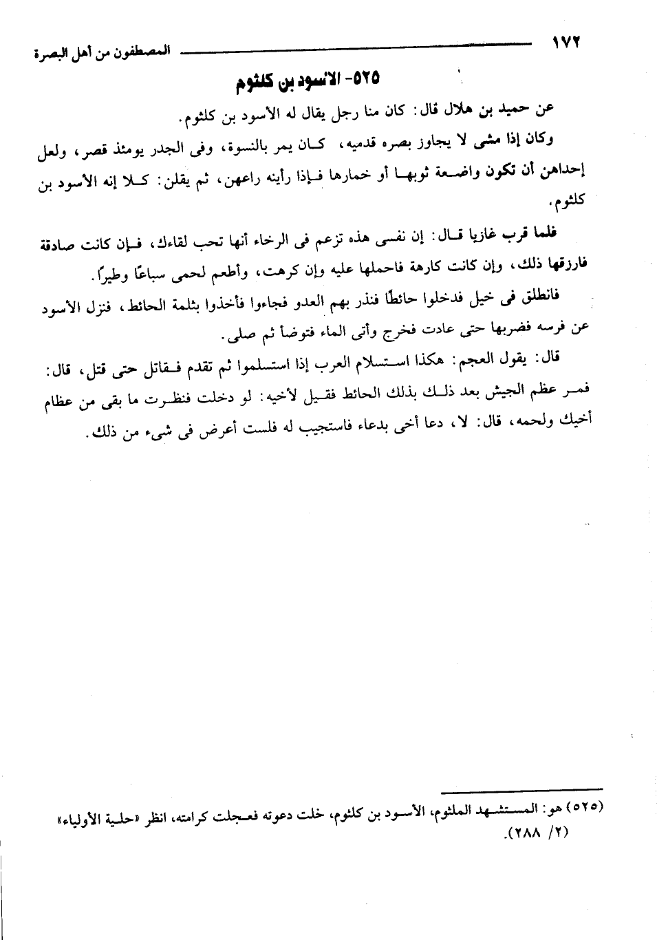 525 - هو: المستشهد الملثوم، الأسود بن كلثوم، خلت دعوته فعجلت كرامته، انظر حلية الأولياء 2/288.