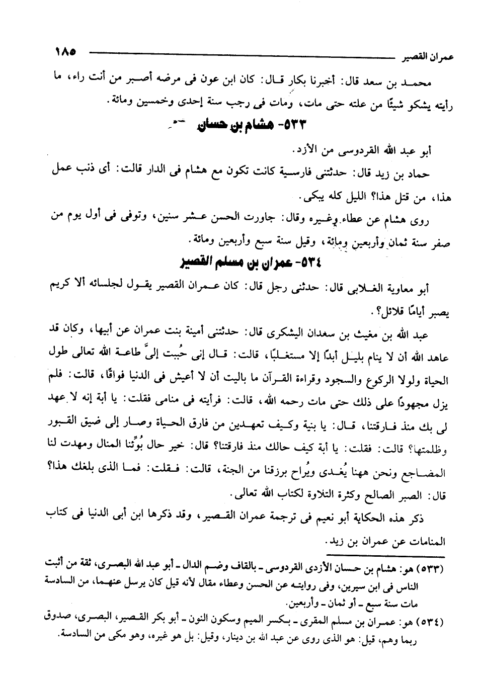 ذكر هذه الحكاية أبو نعيم في ترجمة عمران القصير، وقد ذكرها ابن أبي الدنيا في كتاب المنامات عن عمران ابن زيد.