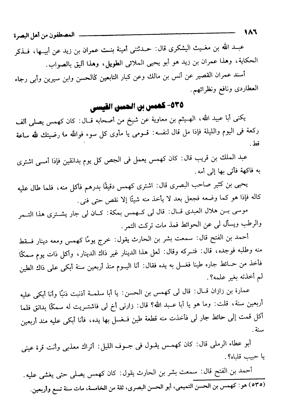 535 - هو: كهمس بن الحسن التميمي، أبو الحسن البصري، ثقة من الخامسة، مات سنة تسع وأربعين.