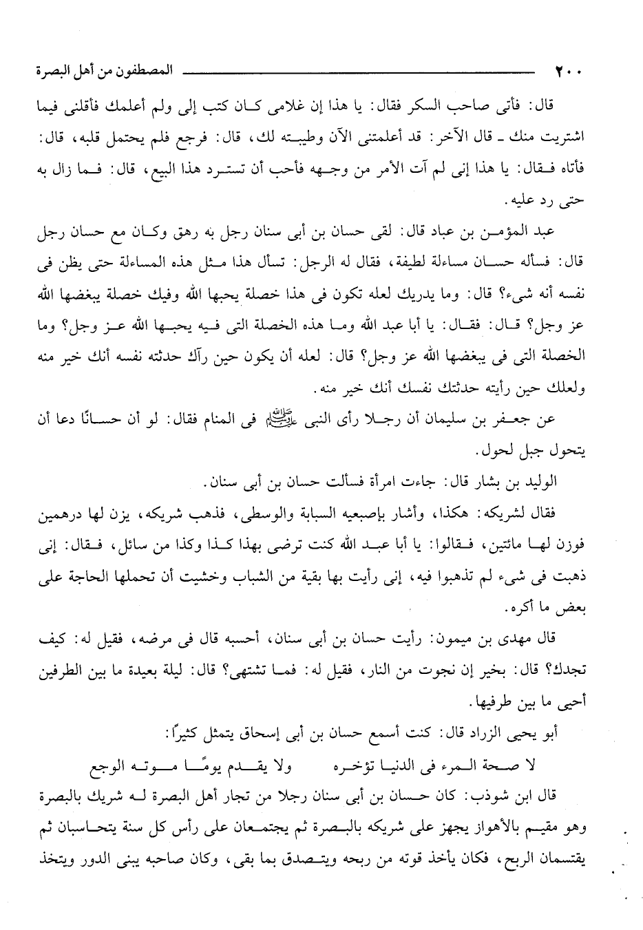 عبد المؤمن بن عباد قال: لقي حسان بن أبي سنان رجل به رهق وكان مع حسان رجل قال: فسأله حسان مساءلة لطيفة، فقال له الرجل: تساءل هذا مثل هذه المساءلة حتى يظن في نفسه أي شيء؟ قال: وما يدريك لعله تكون في هذا خصلة يحبها الله وفيك خصلة يبغضها الله عز وجل قال: فقال يا أبا عبد الله وما هذه الخصلة التي فيه يحبها الله عز وجل؟ وما الخصلة التي في يبغضها الله عز وجل؟