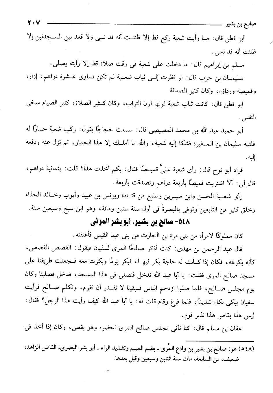 548 - هو: صالح بن بشير بن وادع المري -بضم الميم وتشديد الراء - أبو بشر البصري، القاص الزاهد، ضعيف من السابعة، مات سنة اثنتين وسبعين وقيل بعدها.