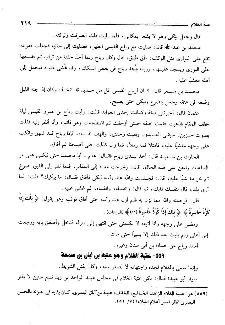 559 - هو: عتبة الغلام الزاهد، الخاشع، الخائف، عتبة بن أبان البصري، كان يشبه في حزنه بالحسن البصري انظر أعلام النبلاء 7/51.