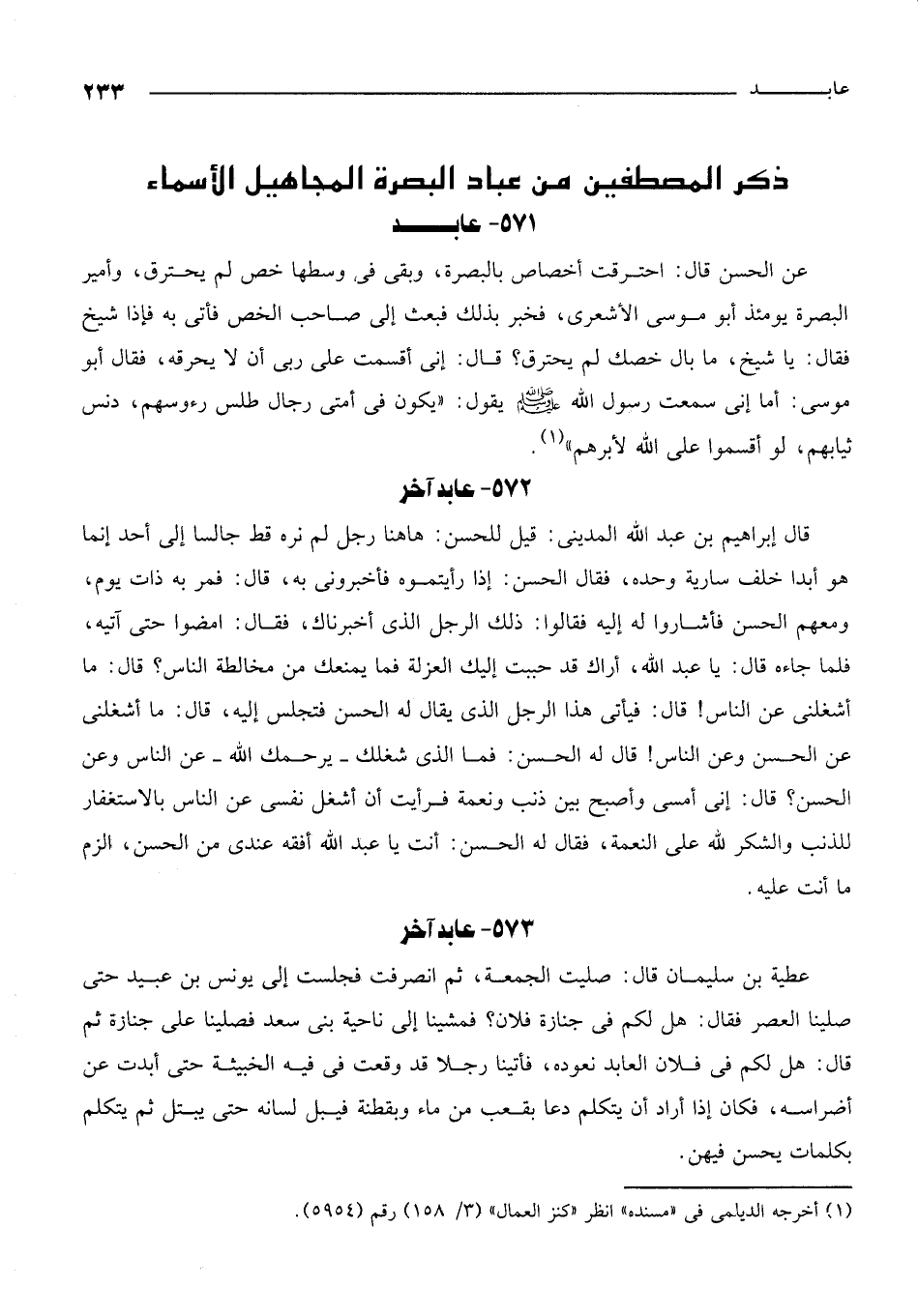 ذكر المصطفين من عباد البصرة المجاهيل الأسماء