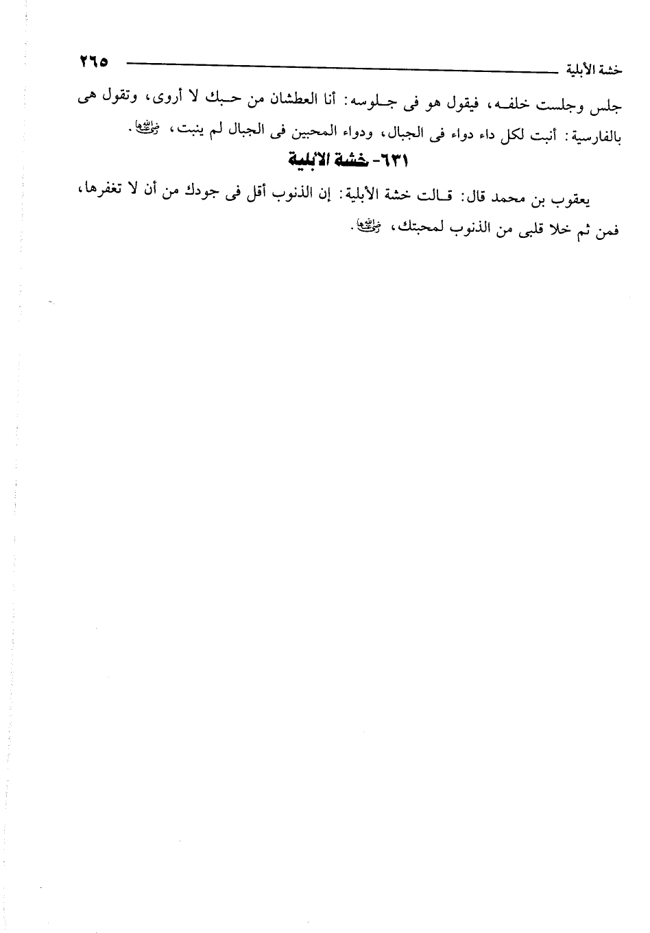 يعقوب بن محمد قال: قالت خشة الأبلية: إن الذنوب أقل في جودك من أن لا تغفرها، من ثم خلا قلبي من الذنوب لمحبتك. رضي الله عنها.