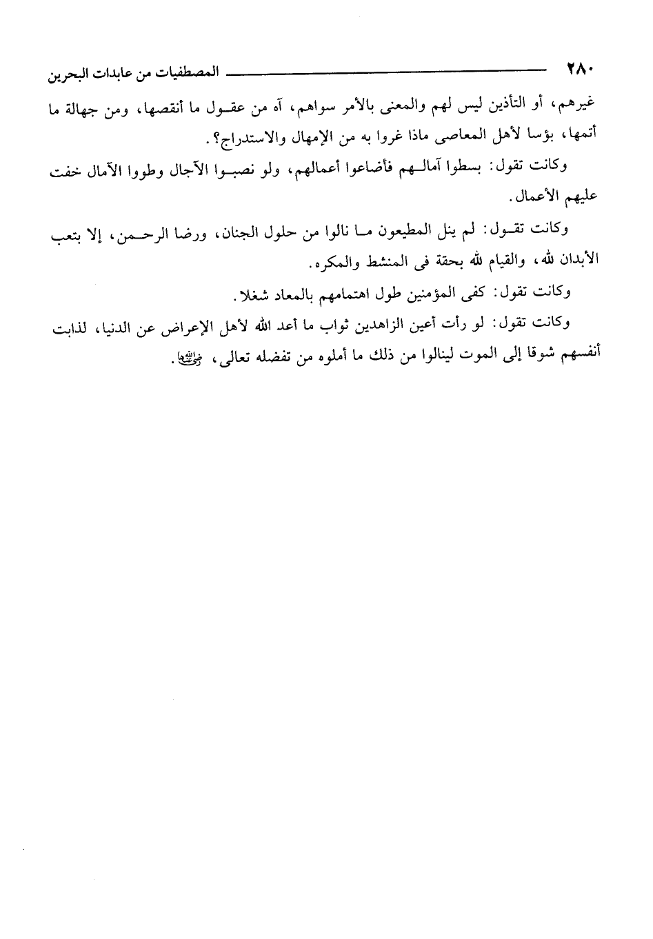 وكانت تقول: كفى المؤمنين طول اهتمامهم بالمعاد شغلاً.