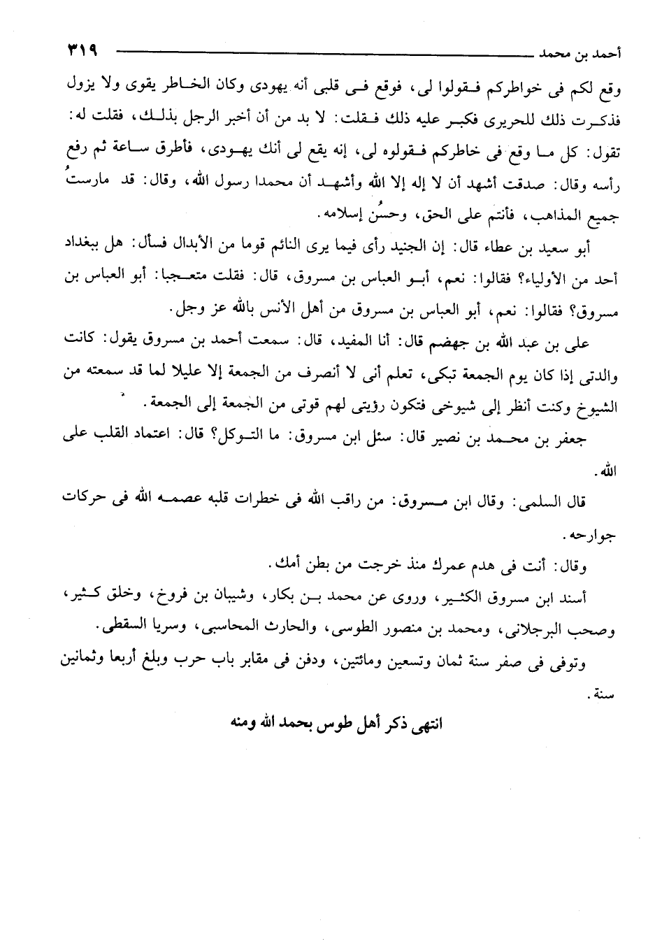 انتهى ذكر أهل طوس بحمد الله ومنه.