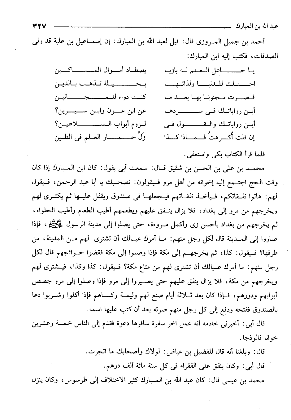 محمد بن عيسى قال: كان عبد الله بن المبارك كثير الاختلاف إلى طرسوس، وكان ينزل