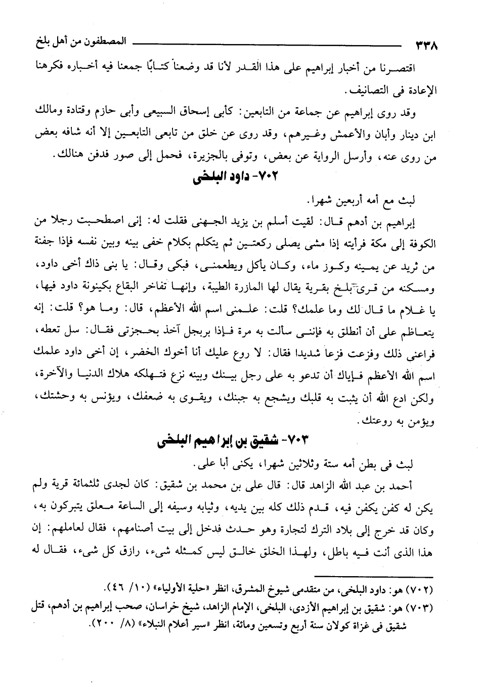 702 - هو: داود البلخي، من متقدمي شيوخ المشرق، انظر حلية الأولياء 10/46.