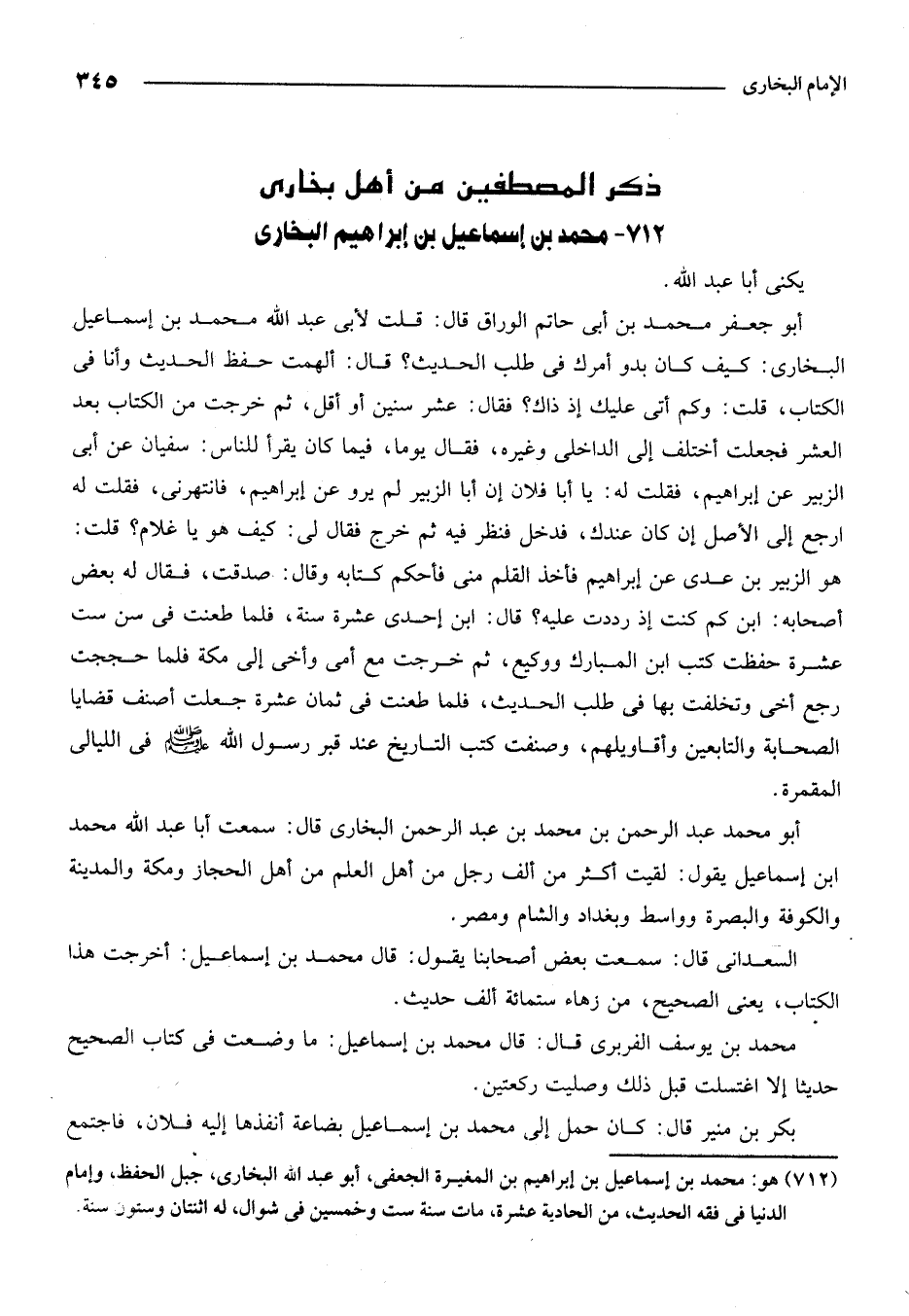 712 - محمد بن إسماعيل بن إبراهيم البخاري